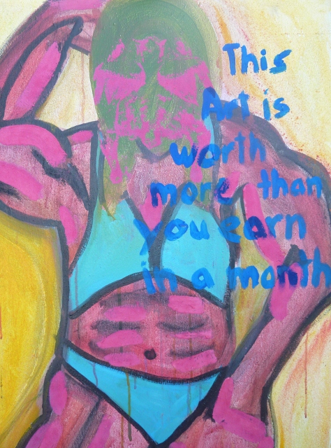You can own a piece of Felony. The painting below is being auctioned off (complete with all it’s spray can “improvements”). If you’d like to bid on the painting from the show you just saw, click here