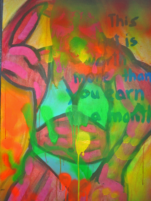 You can own a piece of Felony. The painting below is being auctioned off (complete with all it’s “spray can improvements”). If you’d like to bid on the painting from the show you just saw, click here.
